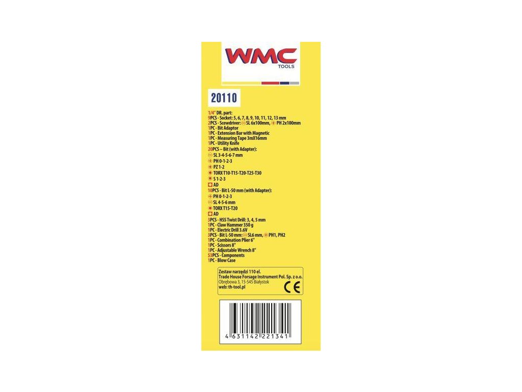 Sada nářadí WMC 110ks klíčů, šroubováků a bitů