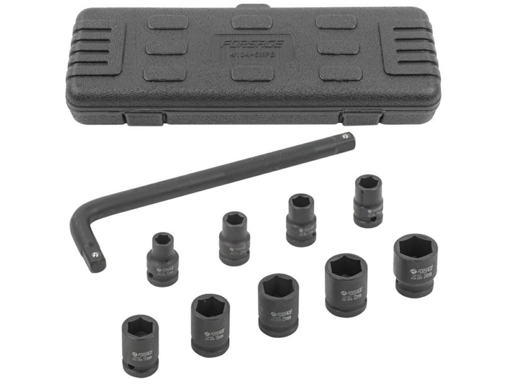 - Velikosti nástavců: 10mm, 12mm, 13mm, 14mm, 17mm, 19mm, 21mm, 22mm, 24mm
