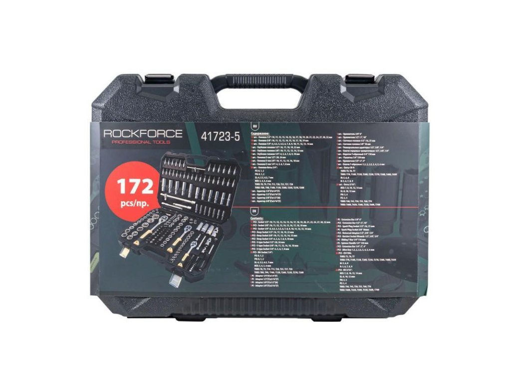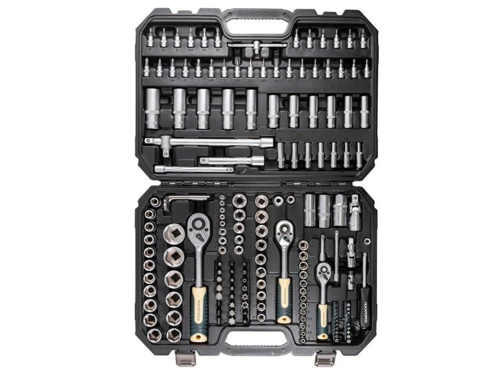 Součásti ”:- 13 ks nástrčných hlavic: 1-4,5-5-5,5-6-7-8-9-10-11-12-13-14mm7 ks dlouhé nástrčné hlavice: 4-5-6-7-8-9-10mm5 ks nástrčné hlavice typ E: E4-E5-E6-E7-E84 ks nástrčné hlavice HEX: 3-4-5-6mm16 ks nástrčné hlavice TORX: T8-T9-T10-T15-T20-T25-T27-T30-TH8-TH9-TH10-TH15-TH20-TH25-TH27-TH304 ks nástrčné hlavice SL: 4-5,5-6,5-7mm3 ks nástrčné hlavice PH: PH0-PH1-PH23 ks nástrčné hlavice PZ: PZ0-PZ1-PZ212 ks nástrčné hlavice TORX: T5-T6-T7-TH7-TH10-TH15-TH20-TH25-TH27-TH30-TH40-TH453 ks nástrčné hlavice SL: M5-M6-M85 ks nástrčné hlavice RIBE: R5-R6-R7-R8-R91 ks rukojeť s ráčnou1 ks otočná rukojeť1 ks rukojeť typu T1 ks prodloužení: 50mm, 100mm1 ks kloubový spoj
