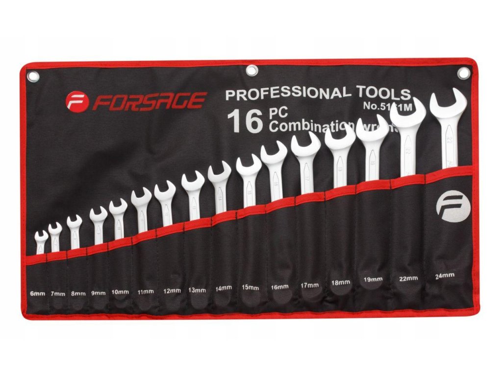 SADA OBOUSTRANNÝCH A OČKOVÝCH KLÍČŮ 6-19, 22, 24 MM 16 KS. OCEĽ CrV FORSAGE