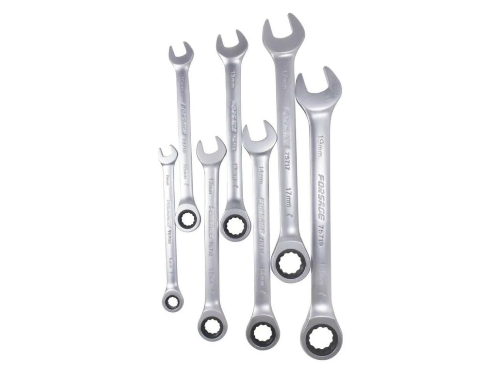 OTEVŘENÉ A OČKOVÉ KLÍČE S RÁČNOU 7 ks 8-19 mm FORSAGE