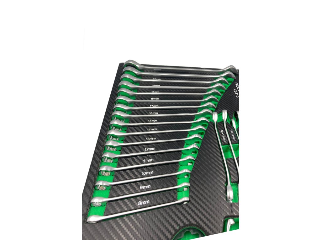- Očkové-ohybové klíče 16 ks: 8,9,10,11,12,13,14,15,16,17,18,19,21,22,24,27 mm