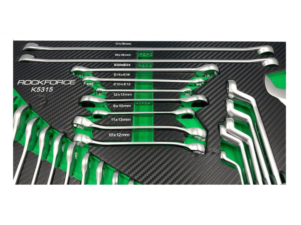 Sada se vyznačuje vysokou kvalitou zpracování, což znamená, že se osvědčí v nejtěžších pracovních podmínkách při velkém zatížení. Klíče převyšují normy DIN 3113. Sada Rockforce je ideální volbou pro profesionální mechanické a automobilové dílny.
