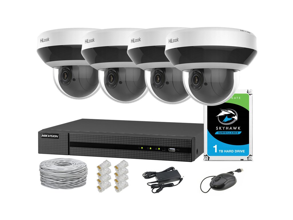 Sada pro IP monitorování, 4 otočné PTZ kamery 4Mpx, IR20, NVR 4xPoE, Disk 1TB - Hilook od Hikvision