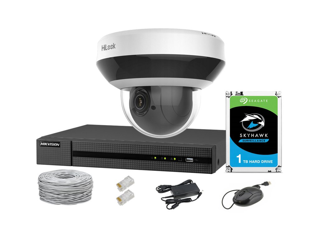 Sada pro monitorování IP, otočná kamera PTZ 4Mpx, IR20, NVR 4xPoE, Disk 1TB - Hilook by Hikvision
