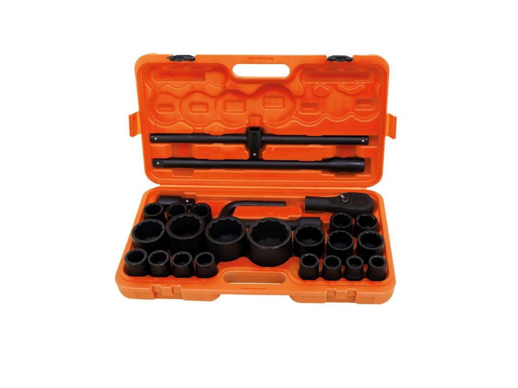- Dvanáctihranné nástrčky 3/4" - 17 ks: 17 mm, 19 mm, 21 mm, 22 mm, 24 mm, 27 mm, 30 mm, 32 mm, 33 mm, 34 mm, 35 mm, 36 mm, (36 mm - 6-hranný), 38 mm, 41 mm, 46 mm, 50 mm