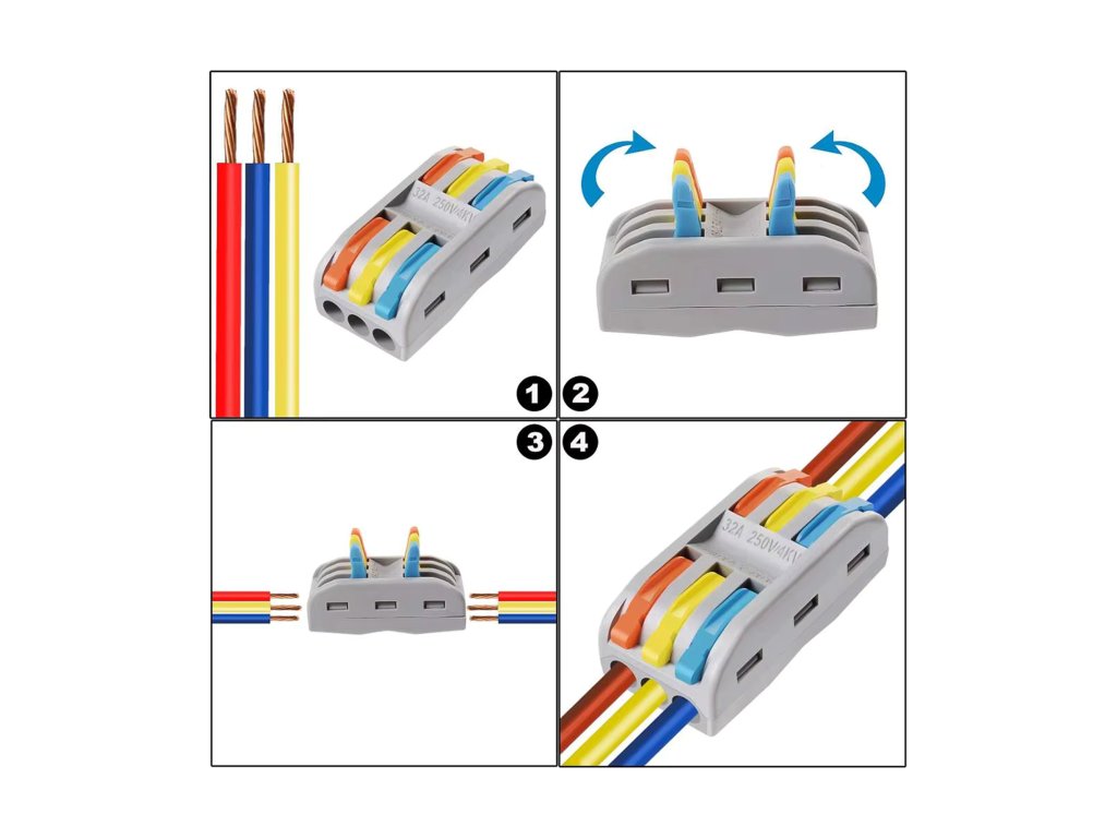Snadnost použití: Páčkový mechanismus umožňuje rychlé a spolehlivé spojení vodičů bez použití nářadí.