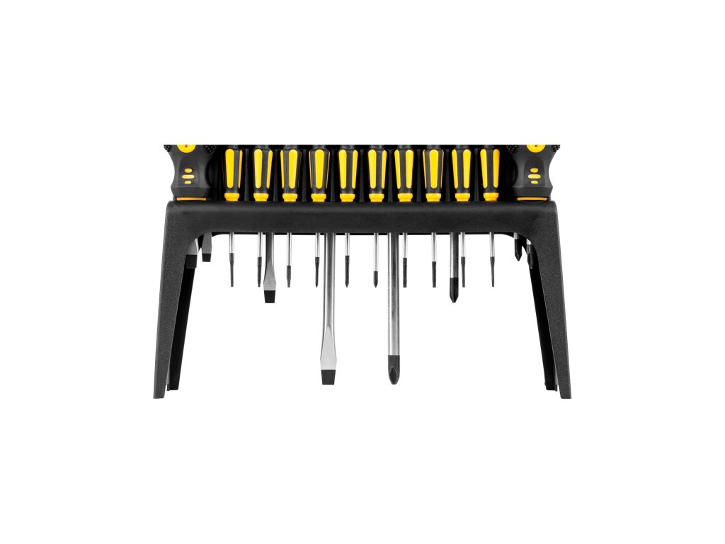 Každý šroubovák má ergonomickou rukojeť, která zajišťuje pohodlí a pevný úchop i při dlouhodobé práci. Vyrobeny z chrom-vanadiové oceli, nástroje jsou odolné proti opotřebení a zaručují dlouhou životnost. Vyberte si naši sadu, abyste měli jistotu, že jste vybaveni nástroji nejvyšší kvality pro každou práci a zajistili si efektivitu a pohodlí.