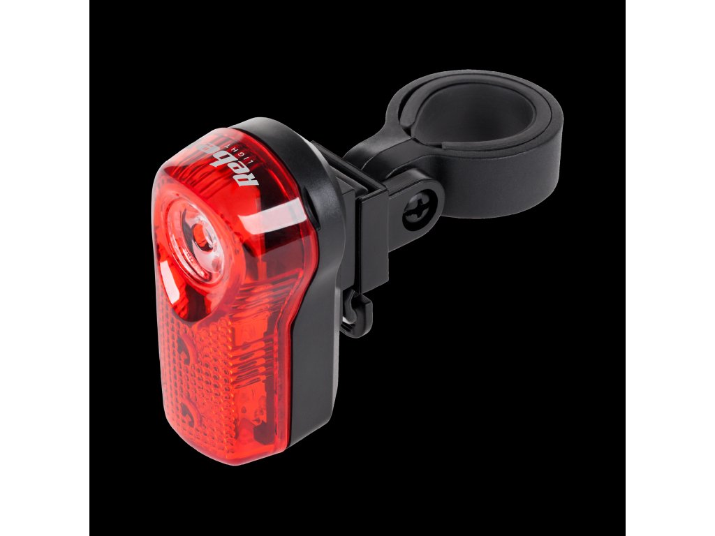 Zadní světlo Rebel je vybaveno třemi červenými LED diodami, z nichž jedna o výkonu 0,5 W je zvláště intenzivní, generuje světelný tok o hodnotě 20 lm. Světlo má tři režimy: všechny diody svítí, svítí pouze dioda 0,5 W, a vypnuto, což umožňuje pružně přizpůsobit osvětlení podmínkám. Stejně jako přední světlo, i zadní světlo je odolné proti dešti, zajišťuje spolehlivý provoz za každého počasí. Napájí se dvěma bateriemi AAA, což zaručuje dlouhou dobu provozu.