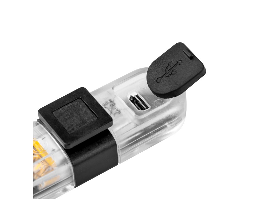 Světla jsou vybavena nabíjecími bateriemi 3,7 V s kapacitou 300 mAh. Doba nabíjení je přibližně 3 hodiny a nabíjení probíhá pomocí přiloženého micro USB kabelu. Plně nabité baterie zajišťují dlouhou dobu provozu, což znamená, že se nemusíte obávat častého nabíjení.
