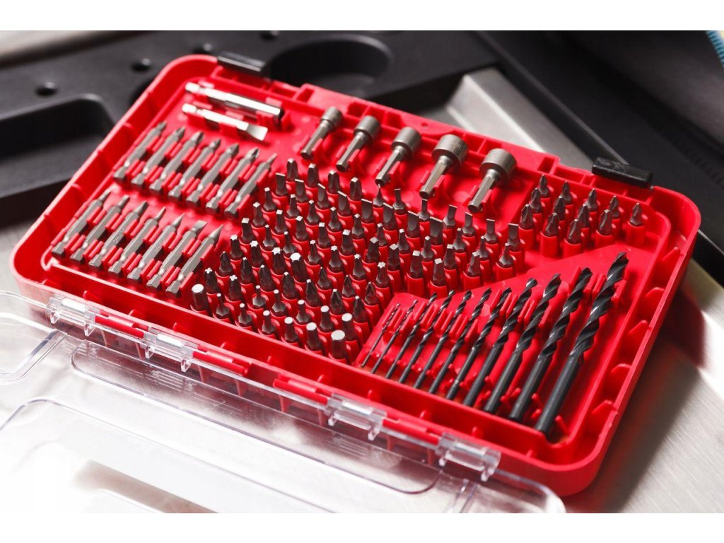 Praktická smíšená sada obsahující vrtáky, bity, nástrčné klíče. Vynikající doplněk k nákupu vrtačky nebo šroubováku.