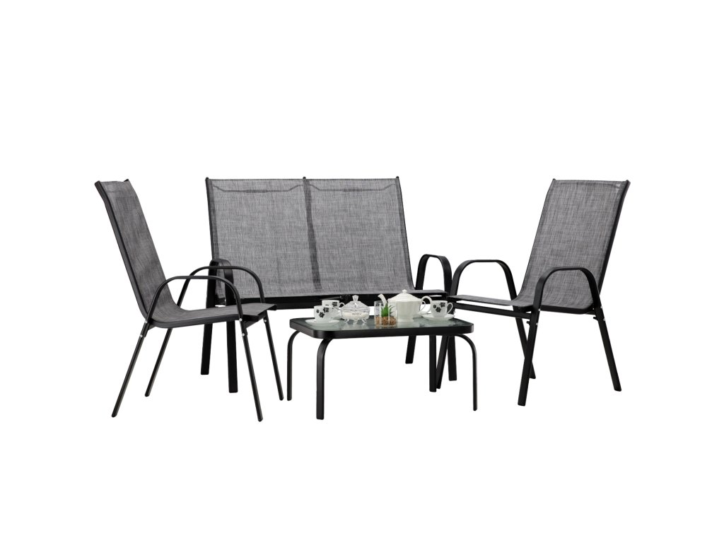 Sada zahradního nábytku je ideální pro lidi, kteří hledají kombinaci klasiky s elegancí. Hodí se do každého prostoru – na balkon, terasu nebo do zahrady. Neskombinovatelná konstrukce židlí s práškovým nástřikem je činí velmi odolnými. Stolek má tvrzené sklo a potah je vyroben z husté, na rám napnuté tkaniny.