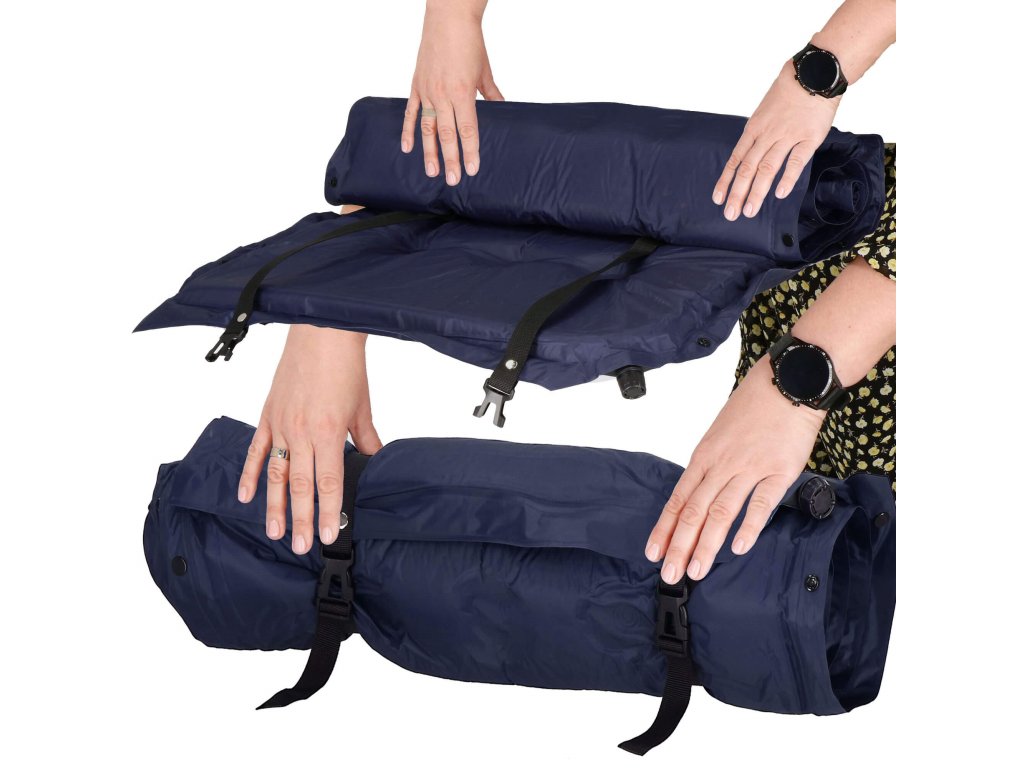 Nastavitelné popruhy s patentními přezkami - po složení udrží karimatku v jedné poloze