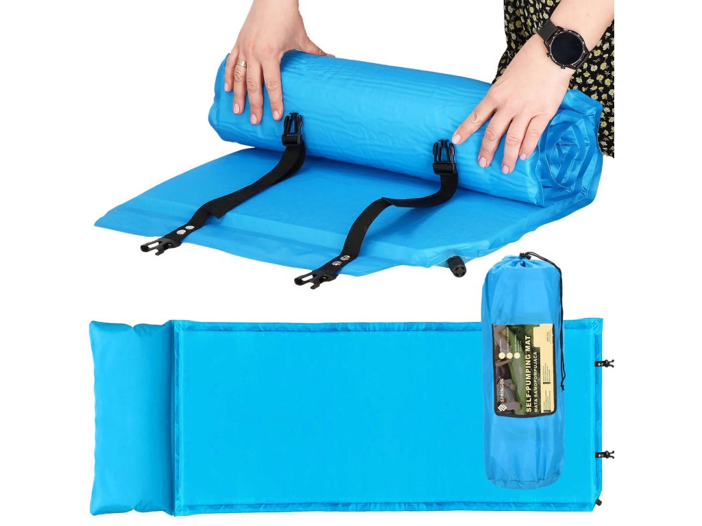 Nastavitelné popruhy s patentními sponami - po složení udrží karimatku v jedné poloze