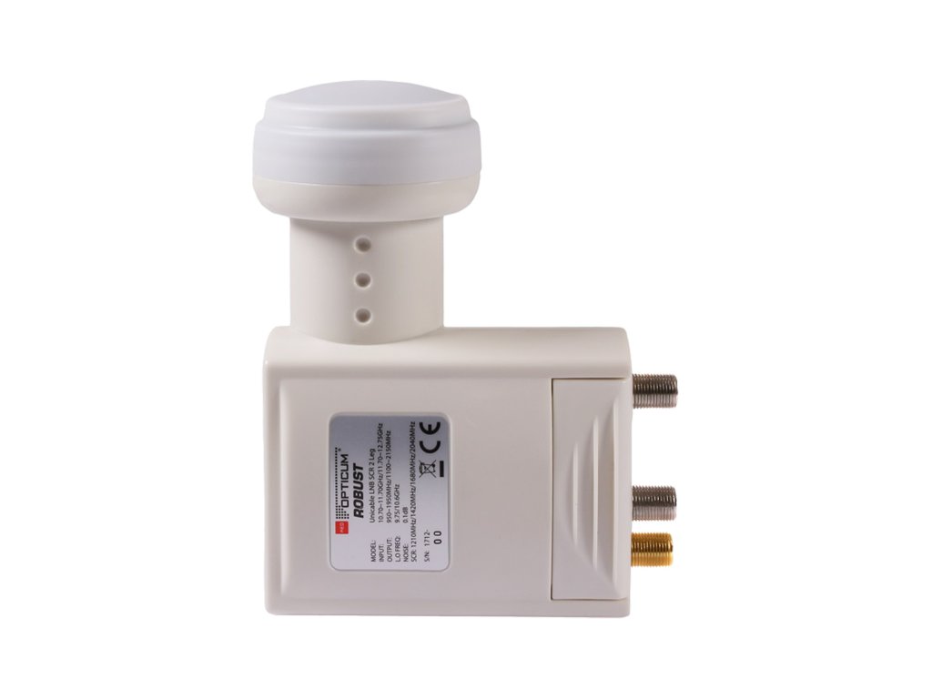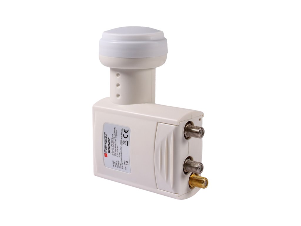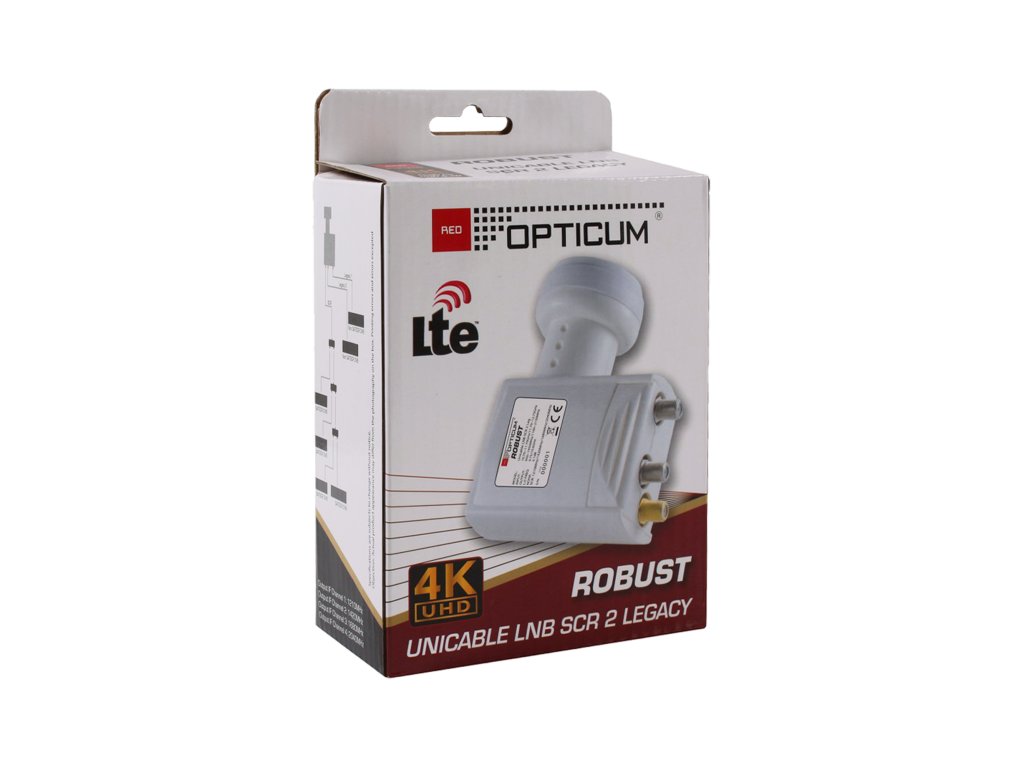 Konvertor Opticum UNICABLE Red Robust SCR 2 LEGACY Funkce UNICABLE spočívá v použití 4 frekvencí pro přenos signálu: - Příjemce 1 - 1210 MHz - Příjemce 2 - 1420 MHz - Příjemce 3 - 1680 MHz - Příjemce 4 - 2040 MHz. Jedno zlaté výstupní rozhraní konvertoru UNICABLE (SCR) umožňuje vést signál jedním kabelem až do max. 4 digitálních přijímačů s SCR nebo UNICABLE signálem. Dvě stříbrná výstupní rozhraní konvertoru umožňují připojení tří tradičních digitálních přijímačů. Technické parametry: - Dolní vstupní pásmo: 10,7-11,7 GHz - Dolní oscilátor: 9,75 GHz - Horní vstupní pásmo: 11,7-12,75 GHz - Horní oscilátor: 10,6 GHz - IF výstup kanál 1 (SCR): 1210 MHz - IF výstup kanál 2 (SCR): 1420 MHz - IF výstup kanál 3 (SCR): 1680 MHz - IF výstup kanál 4 (SCR): 2040 MHz - Zesílení: více než 57 dB - Počet full band výstupů: 2 - Šumový faktor: 0,1 dB - Spotřeba proudu: 300 mA - Průměr úchytu: 40 mm - Pracovní teplota: -40°C + 65°CKonvertor Opticum UNICABLE Red Robust SCR 2 LEGACY
