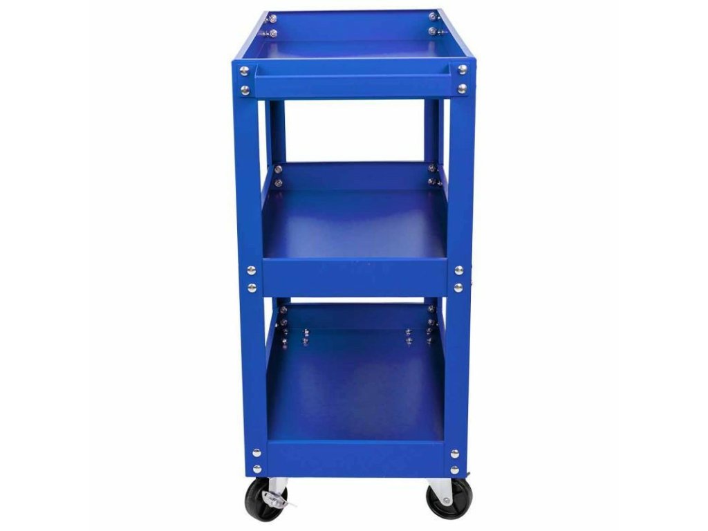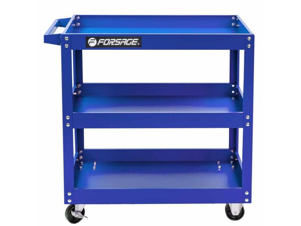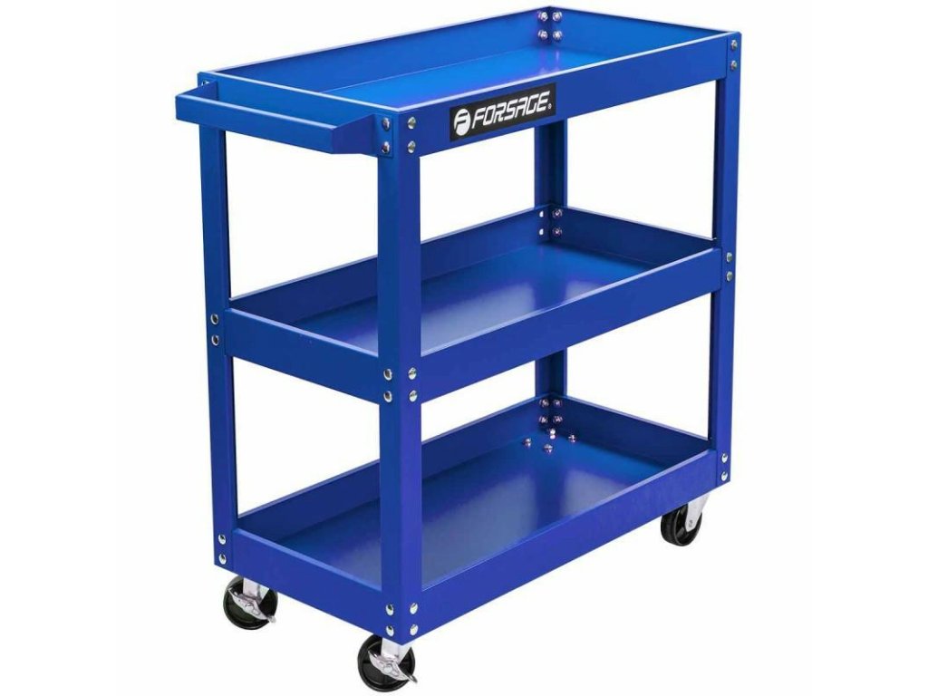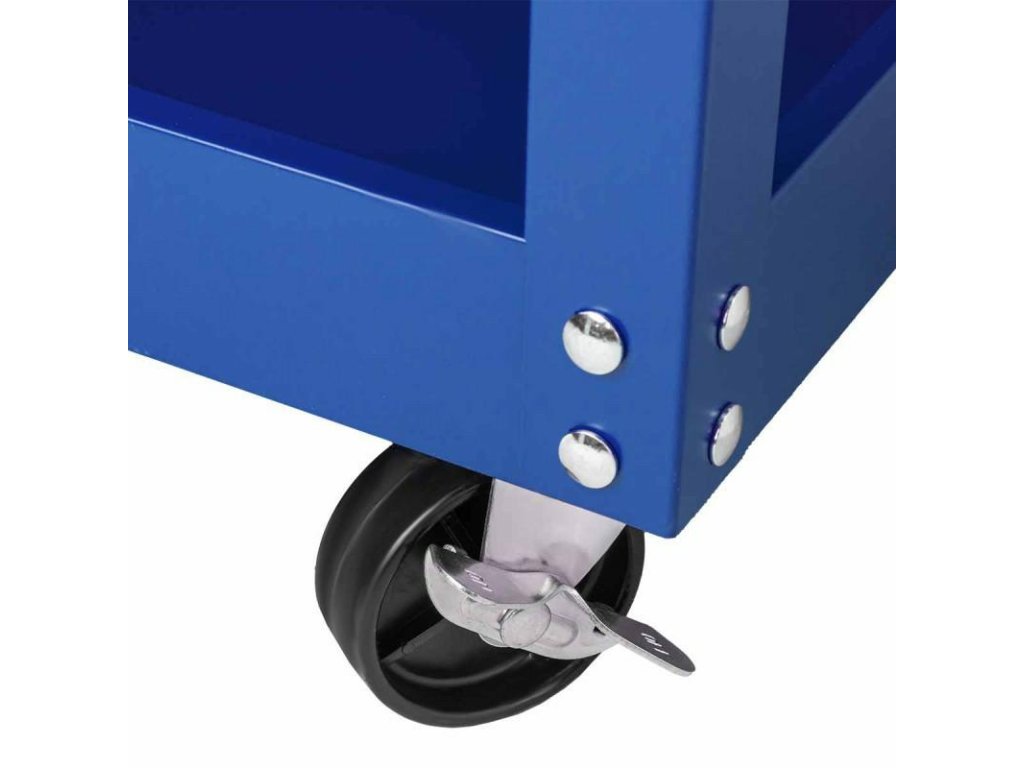 Prostorné lisované z hrubého plechu policie zajistí pořádek kdykoli a potřebné nářadí budete mít vždy po ruce. Vozík má 4 kola, z toho 2 řízená.