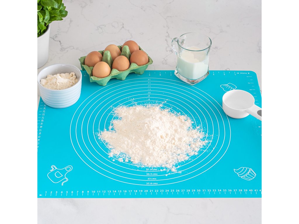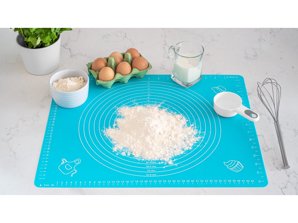 Jednou ze základních výhod silikonové pracovní desky je vytištěná měřítka, která umožňují například vyrobit těsto na pizzu o konkrétním průměru. Silikonová deska na těsto Teesa se vyznačuje také vysokým komfortem používání. Použité materiály zajišťují, že těsto nelepí ke pracovní ploše, ale její spodní strana se přilepí k desce stolu, což zabraňuje posouvání. Důležité je, že silikonová deska nepohlcuje pachy a po dokončení práce ji můžete umýt v myčce na nádobí.