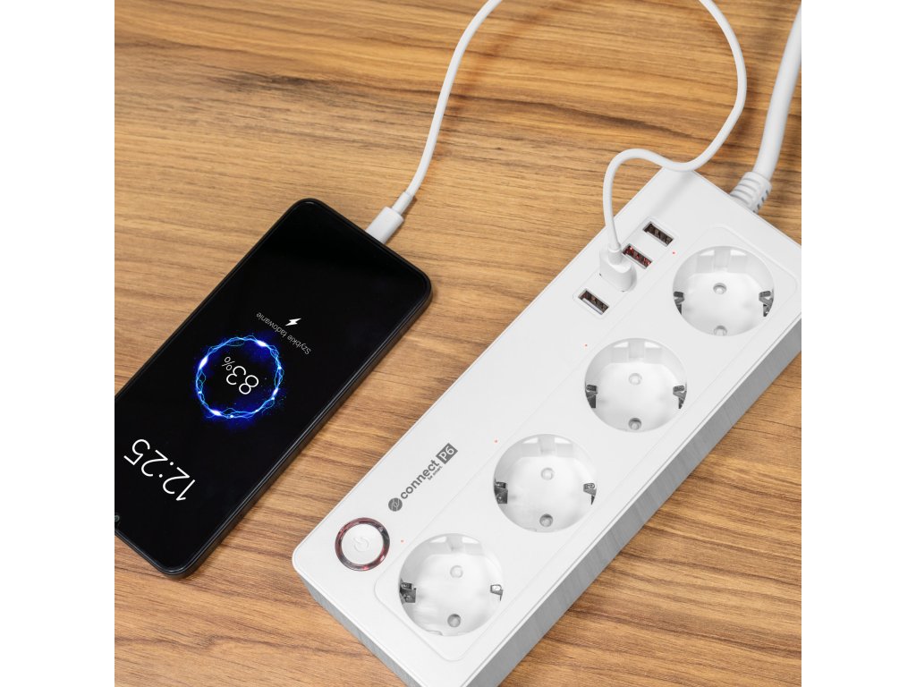 Síťová lišta Kruger&Matz 4 německé zásuvky a 4xUSB 2100 mA Connect P6 Tuya
