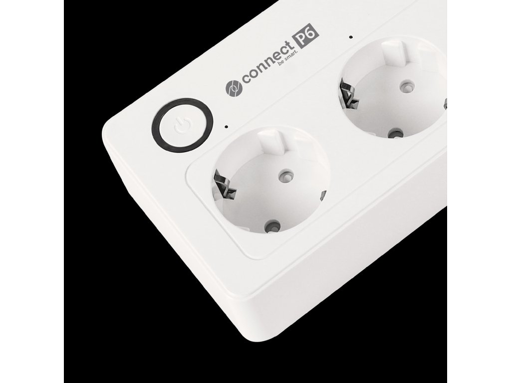 Inteligentní napájecí zdroj wifi Connect P6 je vybavený čtyřmi německými zásuvkami, které umožňují připojení různých zařízení – od počítačů, přes lampičky, až po RTV zařízení. Každou zásuvku můžete zapínat a vypínat samostatně, čím šetříte energii a zvyšujete bezpečnost.