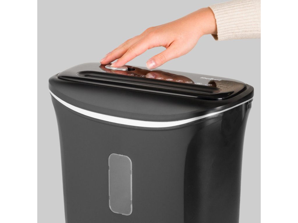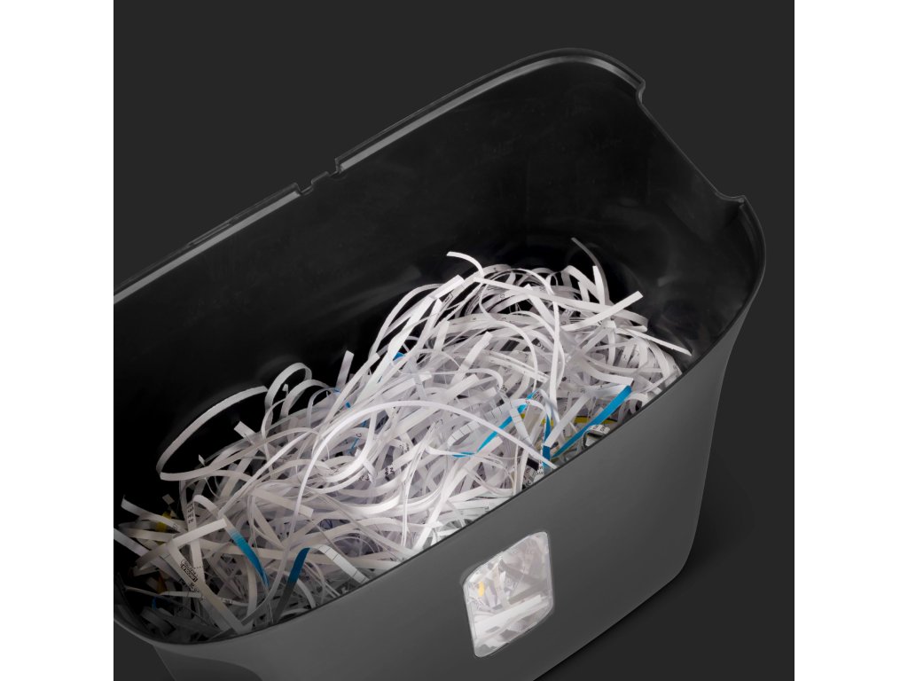 Důležitým prvkem skartovačky je 12litrový koš na proužky, jehož kapacita zajistí, že přístroj se hodí ideálně jak pro domácí použití, tak i v kanceláři.