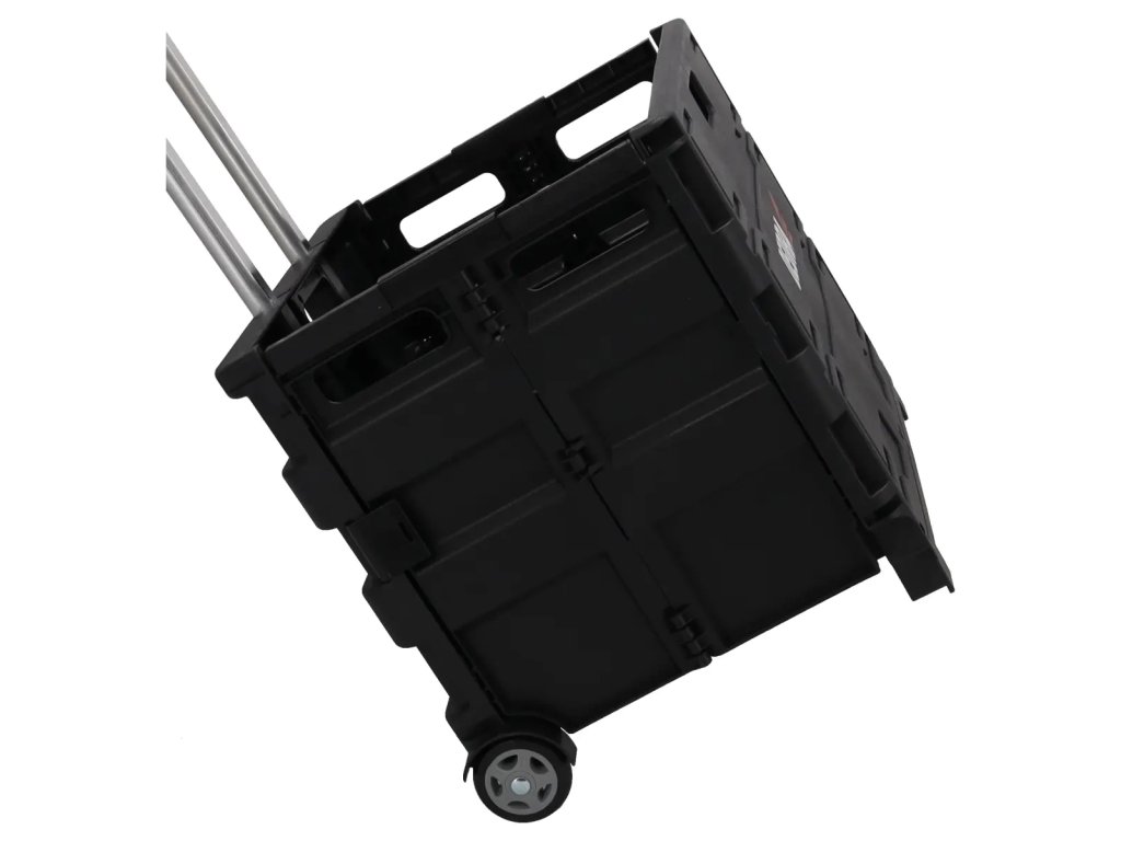 Jeho skládací konstrukce, připomínající formu kufru, nejen šetří místo potřebné pro uskladnění a skladování, ale také usnadňuje transport na pracovní místo. Po složení ho snadno sbalíme např. do zavazadlového prostoru auta, kde zaujme málo místa. Vozík také poskytuje dostatek prostoru pro uskladnění či transport různých příslušenství – jeho objem činí až 67 litrů. Vyroben z vysoce kvalitního plastu a hliníku, je lehký, ale zároveň odolný a robustní. I přes nízkou hmotnost je skříň vozíku odolná, a její maximální nosnost činí až 35 kg.