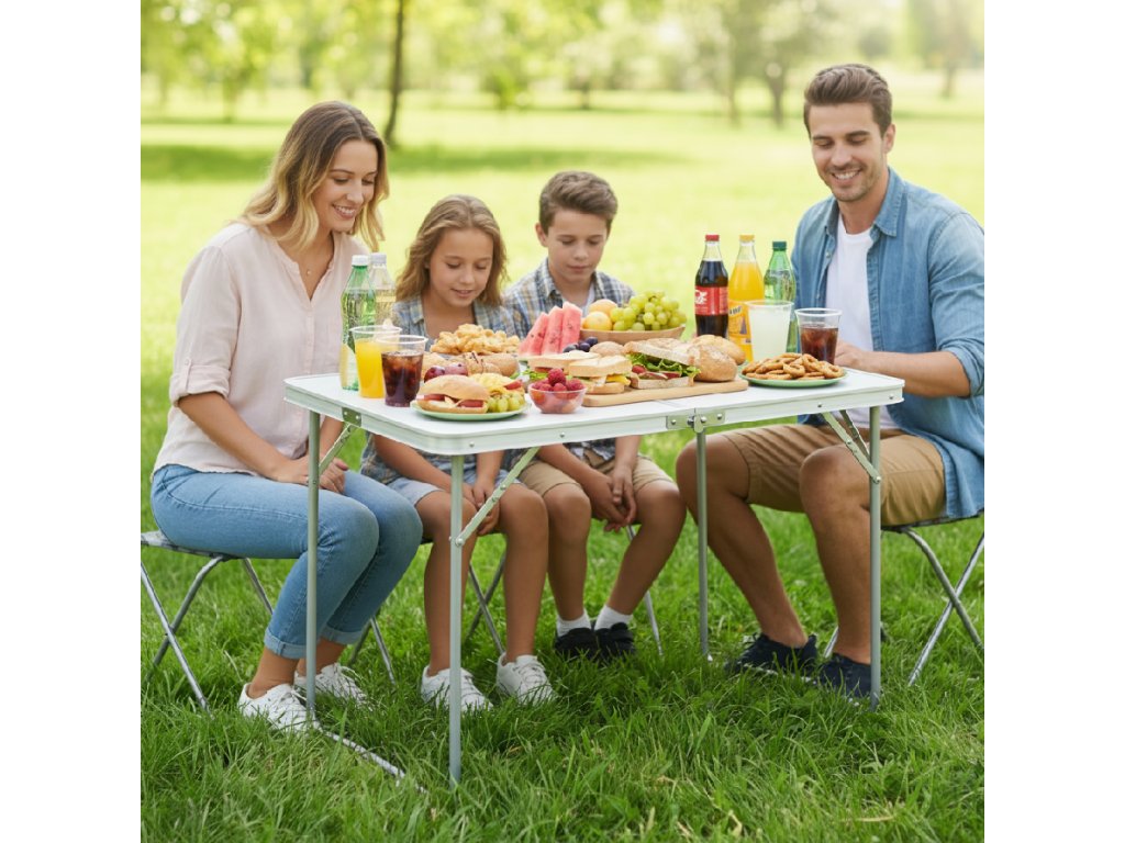 Skládací turistický stůl v bílé barvě je vynikající volba na různé výlety, kempování a outdoorové akce. Díky skládací konstrukci je lehký na uskladnění a přepravu. Stůl je vyroben z odolných materiálů, ideální na použití na čerstvém vzduchu.