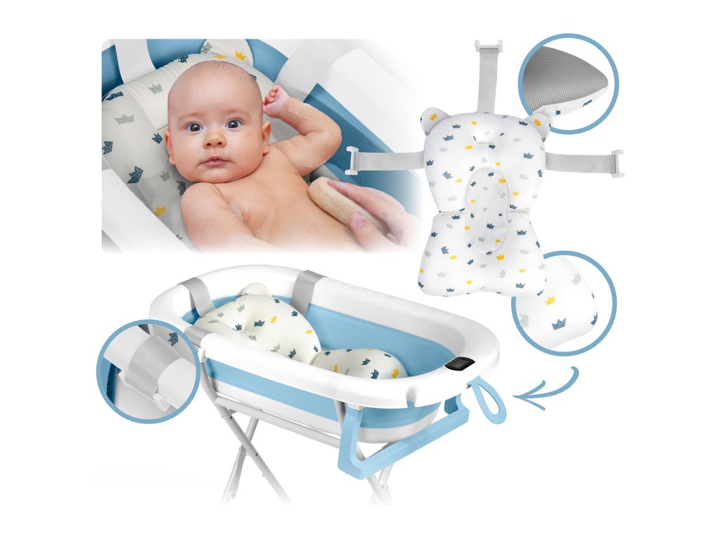 V sadě s vaničkou dostanete jemnou, profilovanou vložku, která jemně podporuje hlavičku a zádíčka miminka. Díky třem pevným úchytům ji upevníte bezpečně na okrajích vaničky – bez sklouznutí, bez stresu. Vložka je vyrobena z rychleschnoucího materiálu, takže po koupeli ji snadno vyjmete a odsajete během okamžiku. Maximální komfort a hygiena během každého okamžiku stráveného ve vodě!
