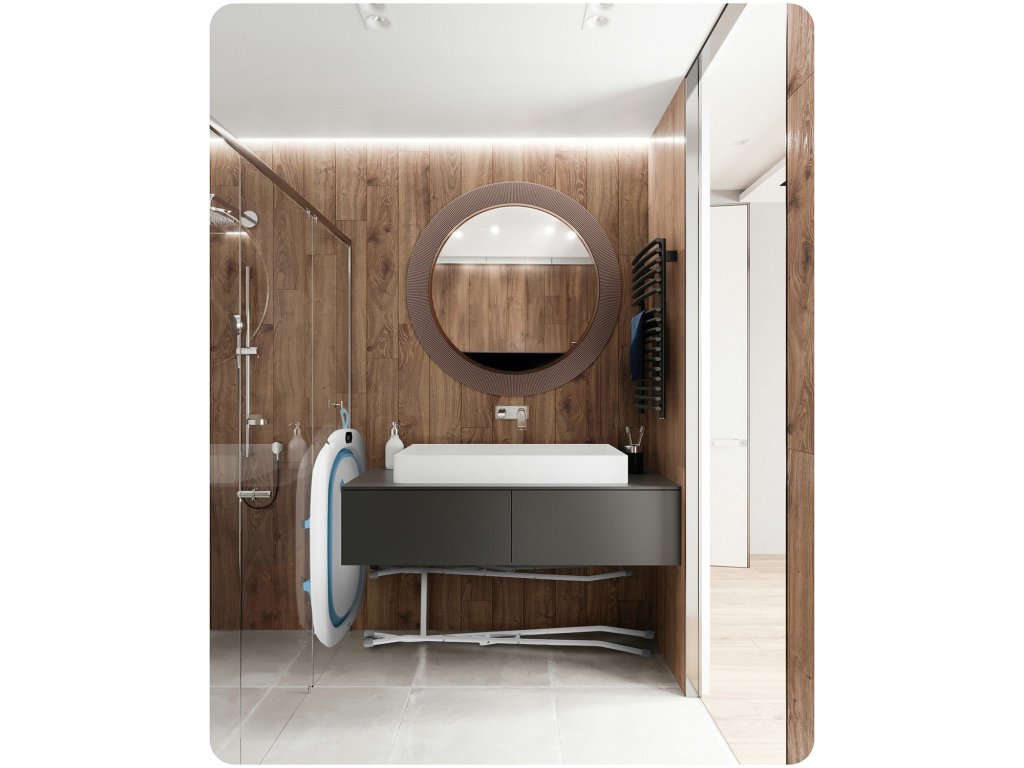 V závislosti na místě a vybavení v koupelně lze vaničku umístit na přiložené vysoké nožky nebo pouze na rozkládací podpěry, na libovolné rovině – vyberte si pohodlnější variantu!
