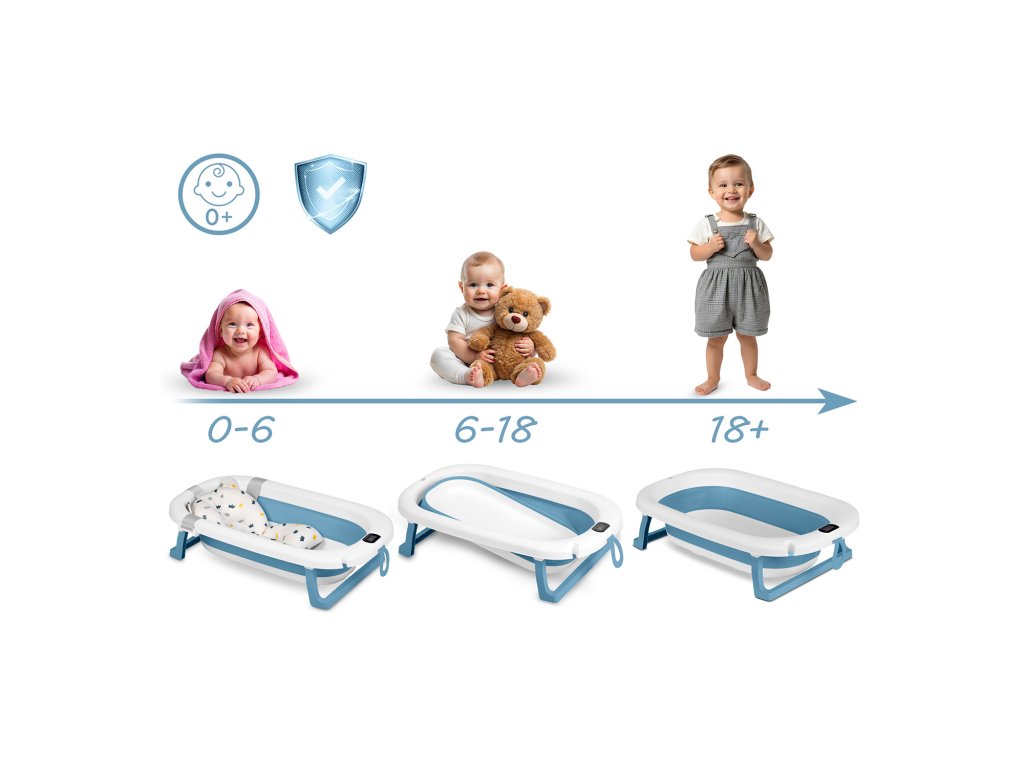 Materiál vaničky neobsahuje BPA ani jiné škodlivé látky, takže koupel miminka je 100% bezpečná.