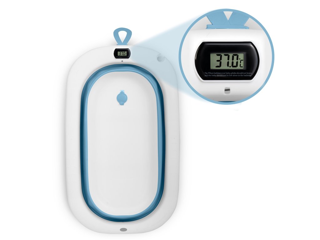 Spolehlivá vanička pro děti s vložkou pro novorozeně a vestavěným teploměrem.