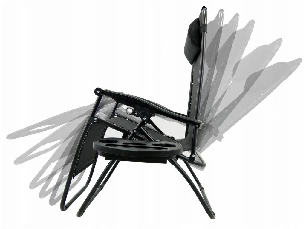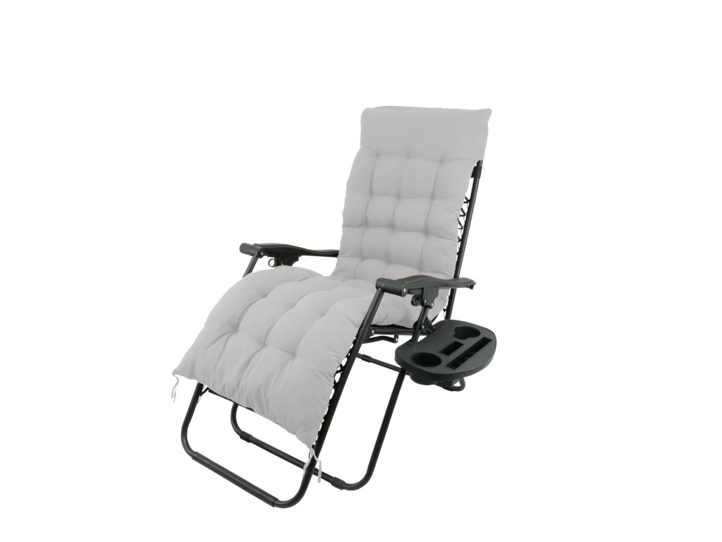 Skládací zahradní lehátko s opěrkou, kapsou černé se šedým polštářem *9979