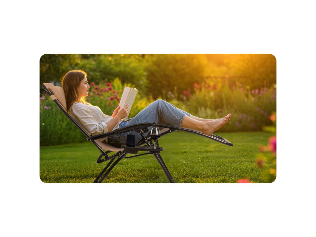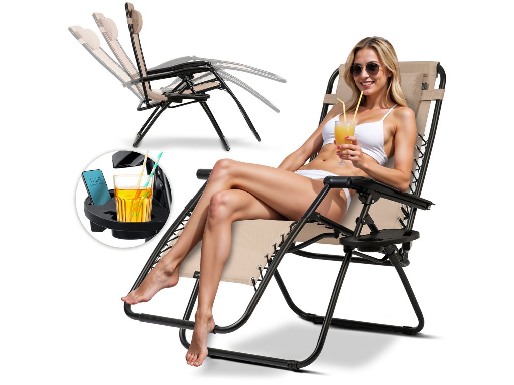 Gravitační lehátko s polštářem a mini stolkem je investice do komfortu a pohodlí každodenní relaxace na čerstvém vzduchu.