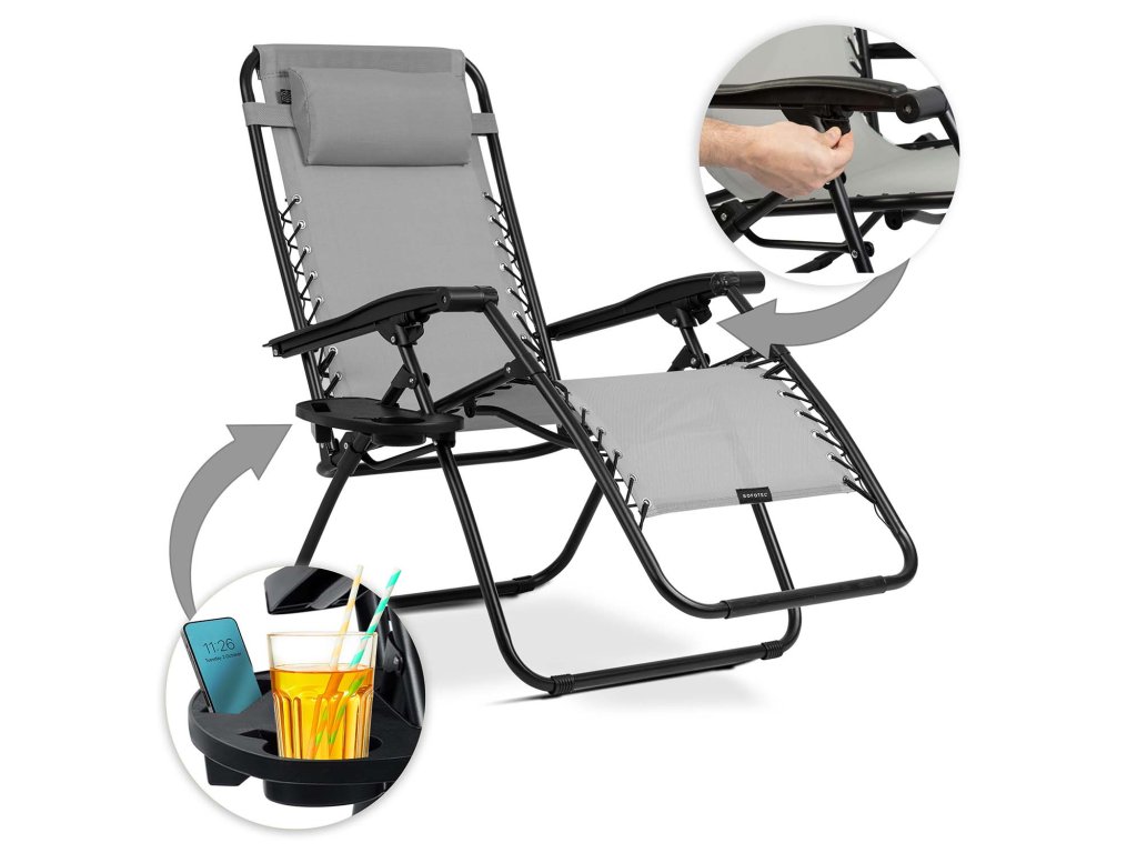 Gravitační lehátko s polštářem a mini stolkem je investice do komfortu a pohodlí každodenního relaxu na čerstvém vzduchu.