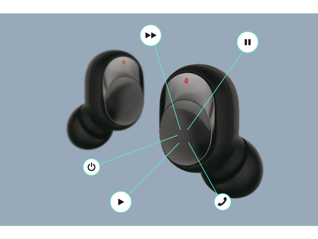 Vychutnejte si pohodlí při ovládání hovorů a hudby. Díky bezdrátovým sluchátkům Rebel nemusíte vytahovat telefon z kapsy. Na každém sluchátku je ovládací tlačítko, které slouží k ovládání konkrétních funkcí zařízení.