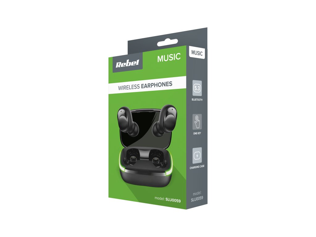Bluetooth sluchátka Rebel TWS-Y60, díky baterii s kapacitou 30 mAh, vám umožní poslouchat oblíbenou hudbu nepřetržitě asi dvě hodiny. S odolným pouzdrem s funkcí nabíjení je nejen ochráníte před ztrátou či poškozením, ale také je rychle dobijete.