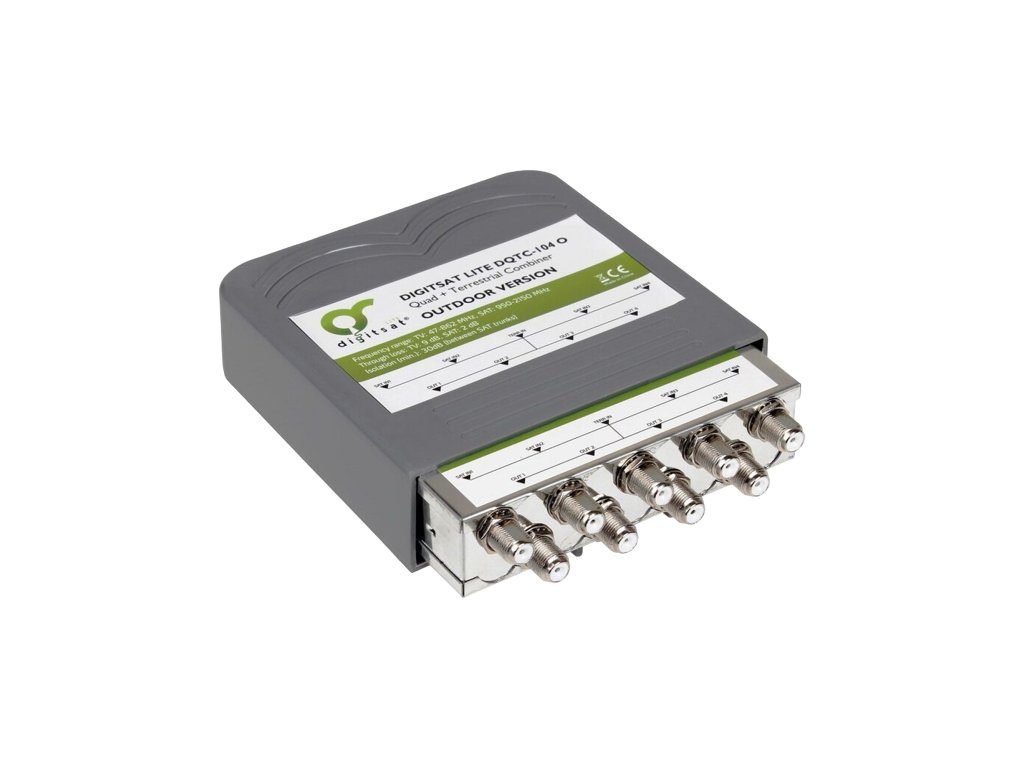 Sumátor DQTC-104 O značky DIGITSAT je zařízení, které umožňuje spojení televizního signálu z pozemní antény a satelitního signálu z konvertoru typu Quad. Takto připravený signál lze přenášet do čtyř nezávislých účastnických zásuvek. Zařízení bylo přizpůsobeno pro průchod konstantní složky napětí do konvertoru, díky čemuž se uživatel nemusí starat o dodatečné přivedení napětí. Použitá vnější skříň zajišťuje bezpečnost používání a ochranu před nepříznivými povětrnostními podmínkami. Univerzální úchyty pak umožňují pohodlnou a rychlou montáž za všech podmínek a v různých typech skríní.