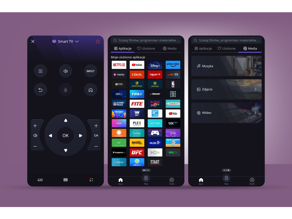 YouTube, Netflix, Disney+, Prime Video, viaplay, cda.pl, polsat go, deezer, Kids