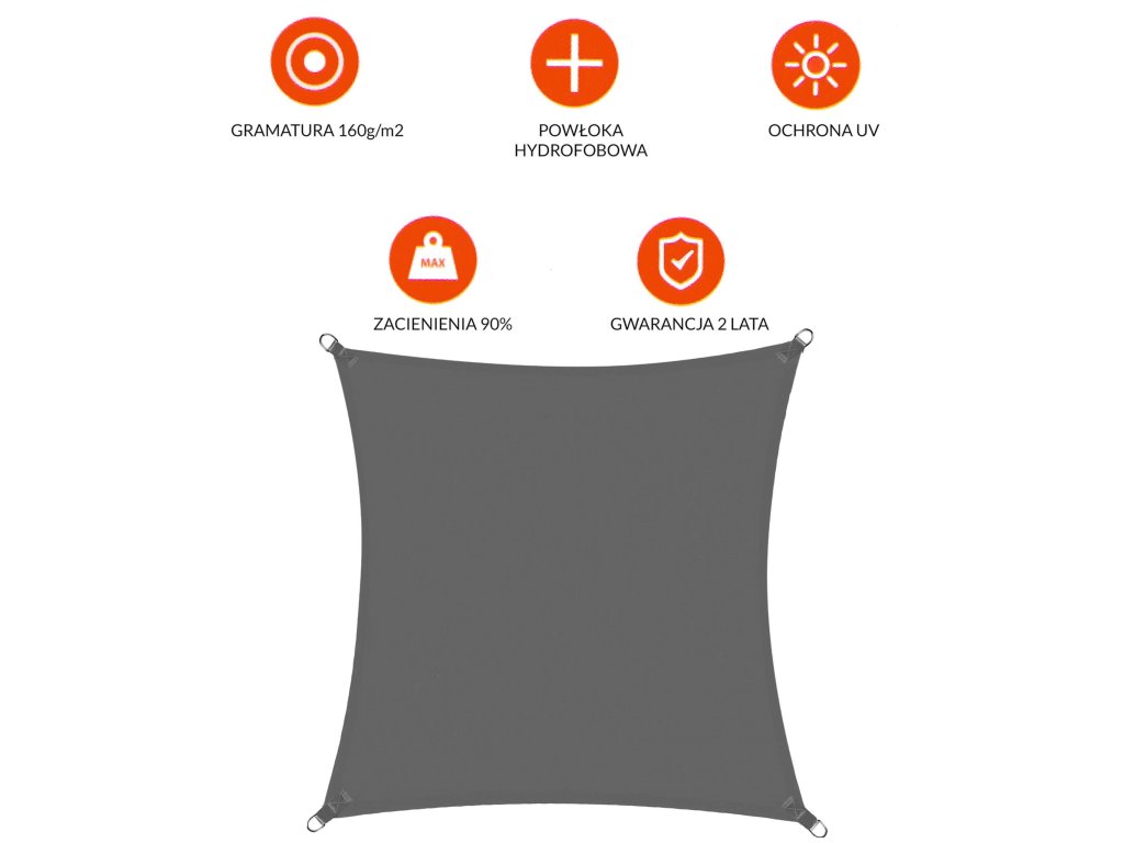 SN0052 SLUNEČNÍ PLACHTA 5 X 5 M TMAVĚ ŠEDÁ
