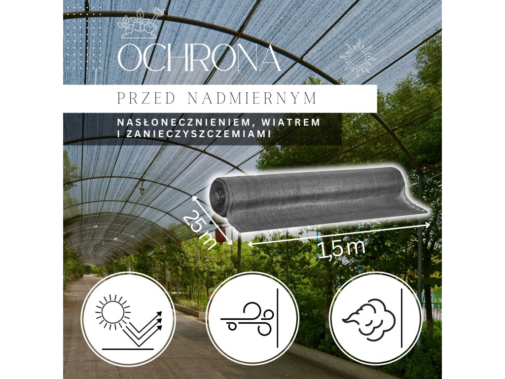 SN0063 STÍNÍCÍ SÍŤ SVĚTLÝ ANTRACIT 185 GSM 1,5 X 25 M 100 PÁSEK