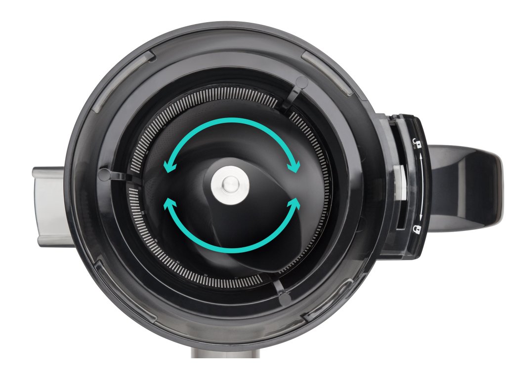 Jednošnekový systém, výkon 200 W a rychlost v rozmezí 40-65 otáček za minutu zajišťují vysokou výkonnost, díky které vždy vymačkáš maximální množství šťávy. Výhodou je zpětný chod, který ti pomůže odblokovat zařízení, když je během práce zablokováno například peckou ovoce.
