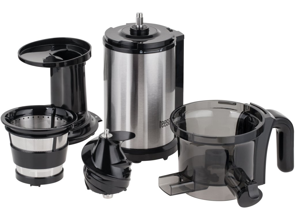 Výběrem pomalu rotujícího odšťavňovače Teesa se nemusíš obávat nákupu dalšího příslušenství. Spolu se zařízením jsou v sadě zahrnuty 2 nádoby – 0,8 litrová na šťávu a 1 litrová na drť, a také pusher zvyšující pohodlí při používání a kartáček usnadňující čištění.