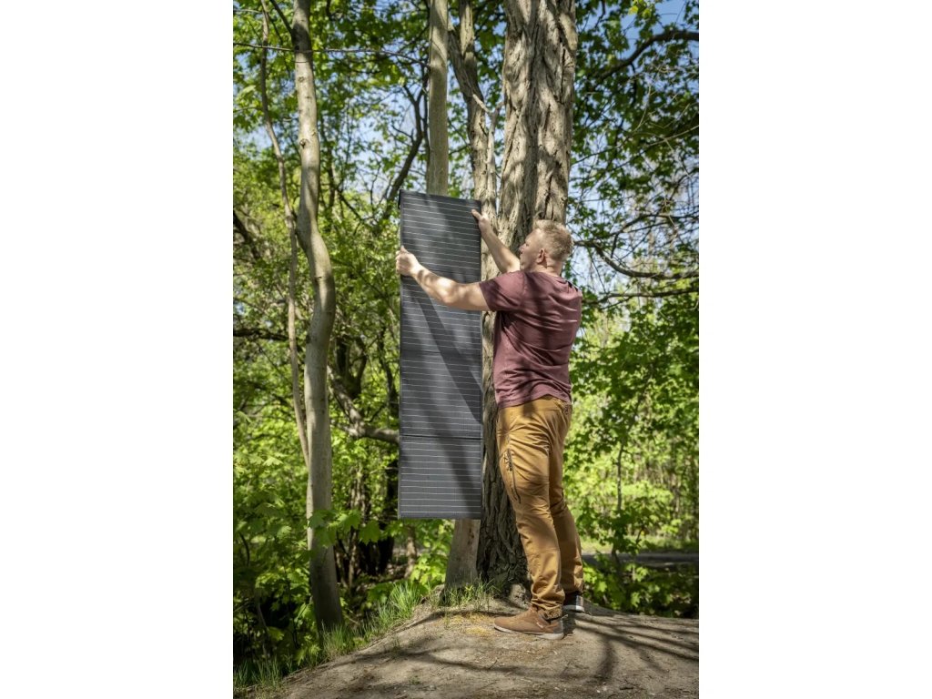 Je ideálním řešením v situacích, kdy nemáme přístup k zdroji elektrické energie, například na výletech v přírodě nebo při kempování, a potřebujeme nabít svou elektrocentrálu nebo jiné elektrické zařízení. Celé zařízení se skládá ze čtyř monokrystalických panelů, které po složení mají tvar pouzdra, což usnadňuje jeho přepravu a skladování.