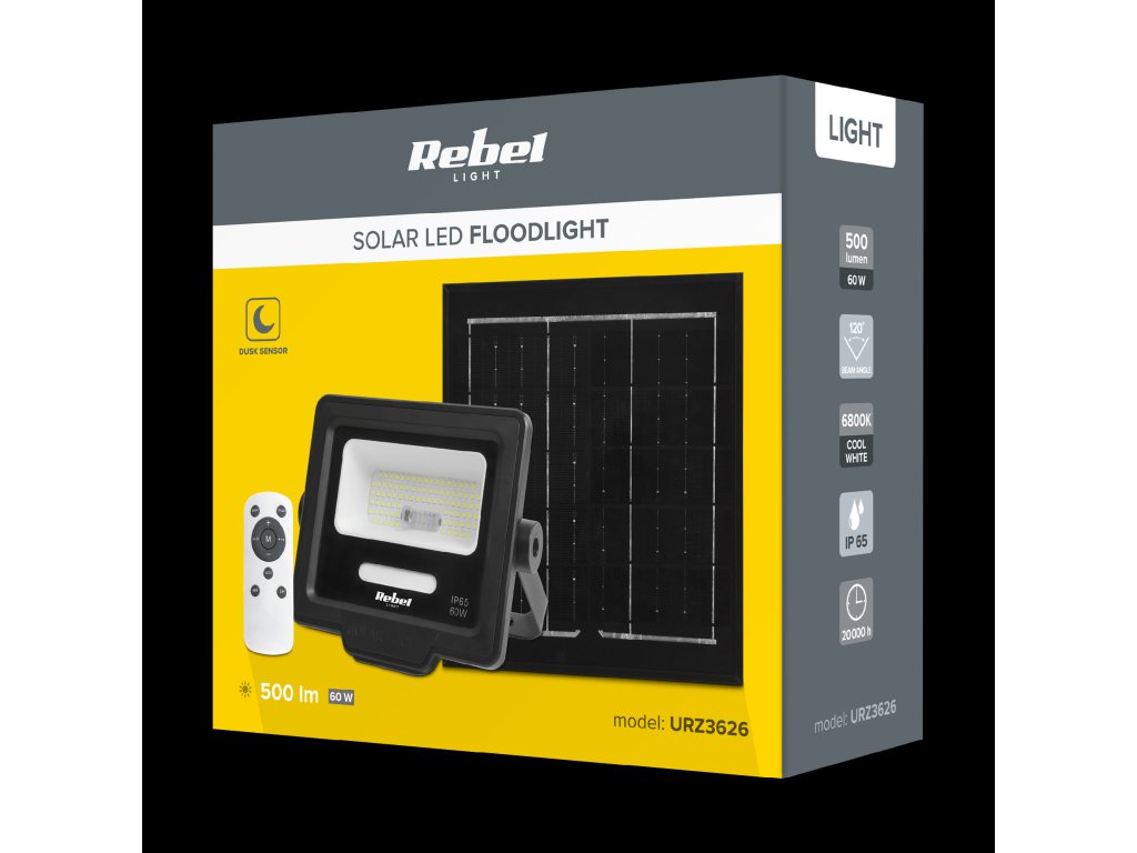 Reflektor LED Rebel je moderní a energeticky úsporné řešení, které zajistí spolehlivé venkovní osvětlení za všech podmínek. Díky solárnímu panelu a soumrakovým senzorům se sám přizpůsobí podmínkám, zajišťujíc jasné a spolehlivé světlo každou noc. Jednoduchá montáž, nezávislé napájení a odolnost vůči povětrnostním vlivům činí z této lampy ideální volbu pro váš dům a zahradu!