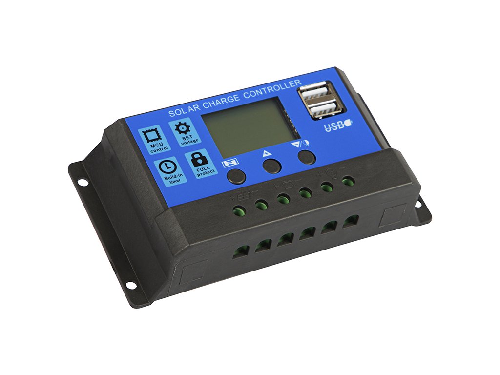 - Displej: Integrovaný LCD displej nabízí přehled o stavu nabíjení, napětí a proudu, což vám poskytne úplnou kontrolu a přehled nad solárním systémem.