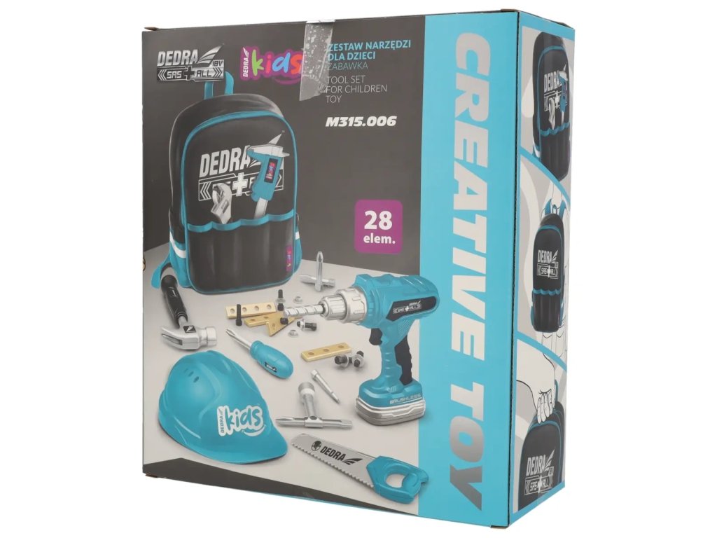 Obsahuje soubor různých ručních nástrojů, praktickou helmu, pohodlný batoh a bateriově napájenou vrtačku-skrutkovač. Všechny tyto prvky nejen napodobují vzhled skutečných nástrojů, ale mají také funkce podobné originálům. Díky tomu hračka nejen poskytuje zábavu, ale také umožňuje dětem poznat fascinující svět nástrojů a naučit se jejich použití již od nejranějšího věku.