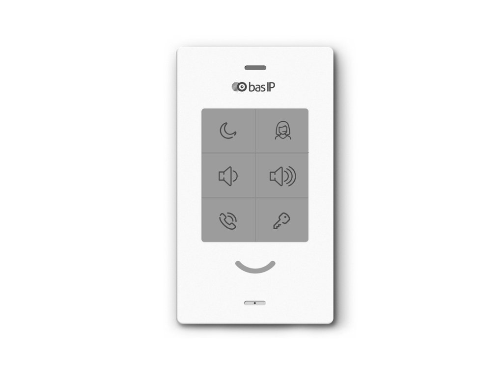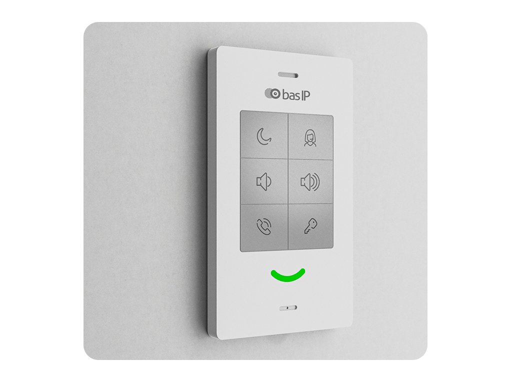 Vnitřní audio stanice SP-03 White je síťový model, určený pro práci v systémech videovrátníků BasIP. Panel je vybaven 6 dotykovými funkčními tlačítky a vysoce kvalitním systémem obousměrné audio komunikace, který zajišťuje bezproblémovou komunikaci s volajícím. Zařízení umožňuje také připojení a obsluhu dodatečného zvonku u dveří.
