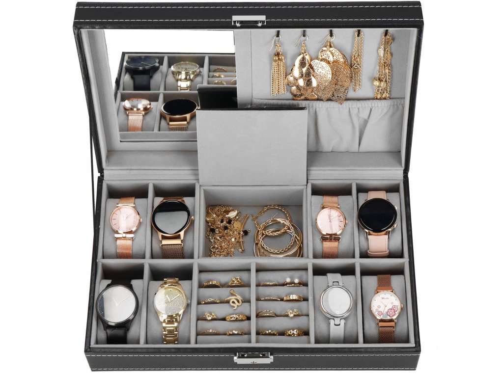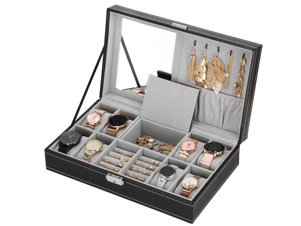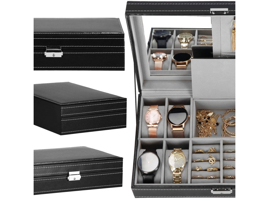 - 2 přihrádky na prsteny, manžetové knoflíky a náušnice