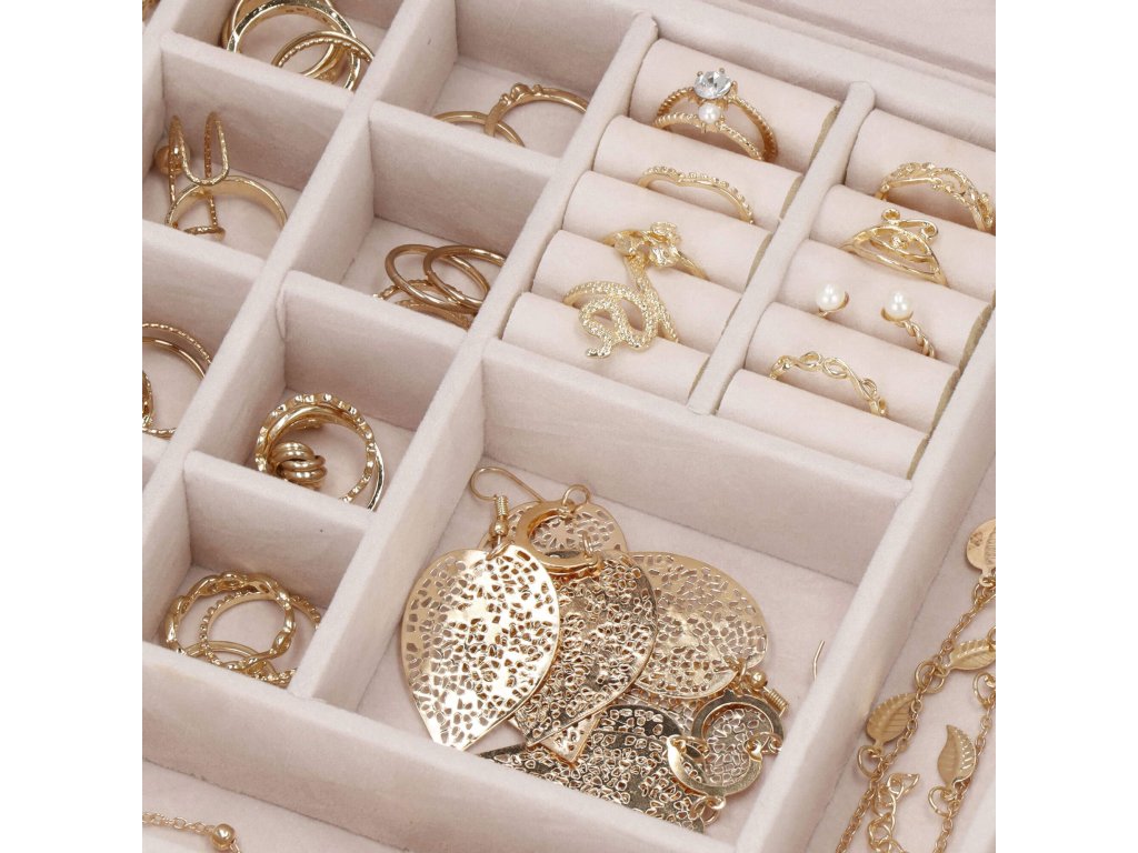 - 2x přihrádka na prsteny: 6,5 x 3,5 cm