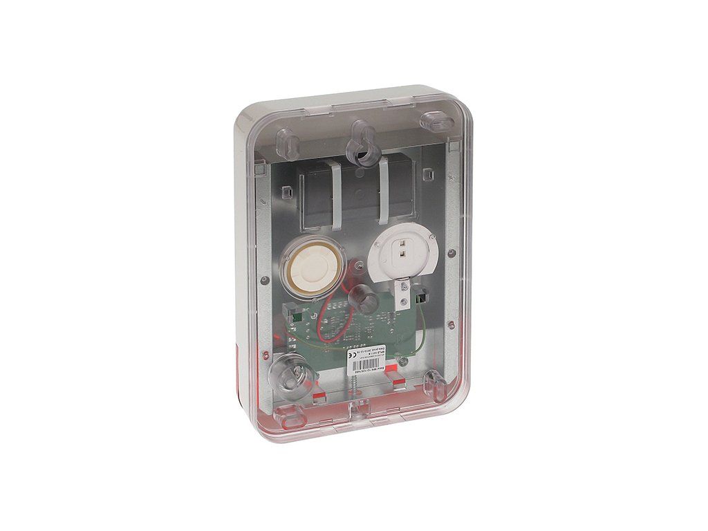 Opticko-akustický signalizátor určený k montáži na vnější stranu budov, vybavený LED diodami a piezoelektrickým měničem. K dispozici je výběr z tří typů modulované zvukové signalizace s intenzitou 120 dB. Tento model je přizpůsoben pro práci s gelovým olověno-kyselinovým akumulátorem 1,3 Ah, 6 V, umístěným uvnitř krytu, který slouží jako záložní zdroj napájení. Kryt vyrobený z polykarbonátu poskytuje vysokou mechanickou odolnost. Signalizátor je také vybaven antitamperovým zabezpečením, které chrání před otevřením krytu nebo odtržením od zdi, jakož i před umlčením zaplavením piezoelektrického měniče montážní pěnou. Vnitřní ochranný kryt z pozinkovaného plechu poskytuje dodatečnou ochranu elektronické desce a měniči před mechanickým poškozením. Díky vhodné impregnaci je elektronický obvod také odolný vůči vlivu nepříznivých podmínek prostředí.