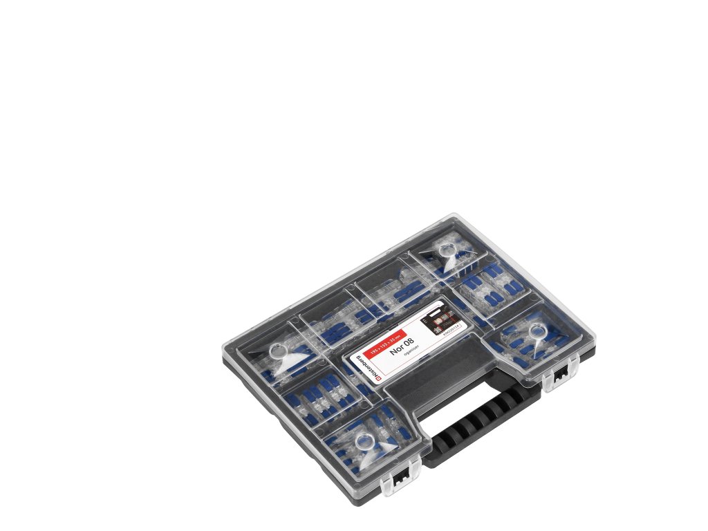 - 72 ks spojovacích konektorů rozdělených podle velikostí a specifikací pro maximální efektivitu.